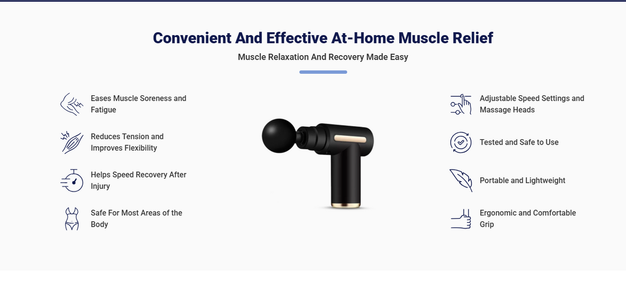 The TheraOne Pro Massage Gun is an advanced percussion therapy device engineered to deliver deep-tissue muscle relaxation. Unlike regular massagers that only offer surface-level vibrations, this high-performance device uses percussive movements to penetrate deeply into muscle layers — effectively reducing tension, stiffness, and pain.